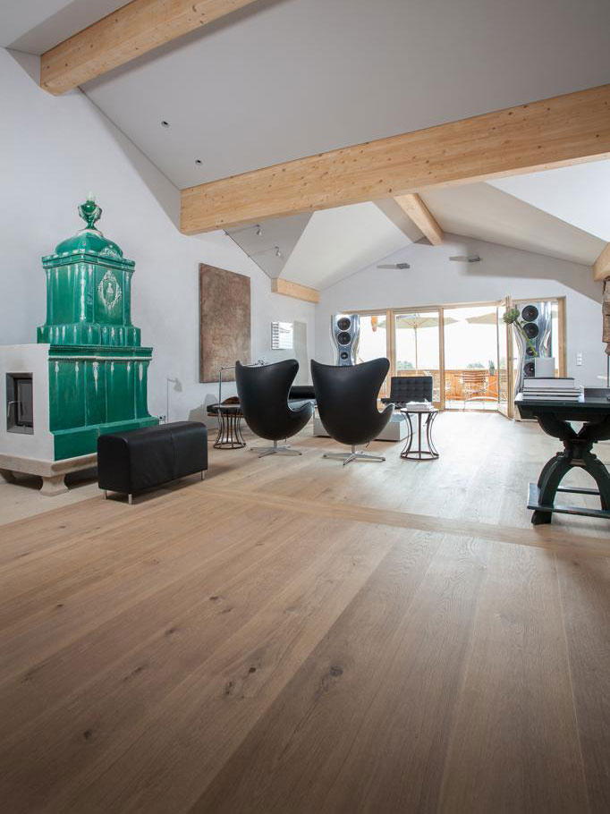 Sägefurnier verleiht jedem Endprodukt einen individuellen und einzigartigen Massivholzcharakter, der sowohl in seiner Fläche als auch seiner Breite optisch und haptisch präsentiert werden kann. Es ist dadurch optimal für Böden, Decken, Wände und Möbel im Innenausbau geeignet.